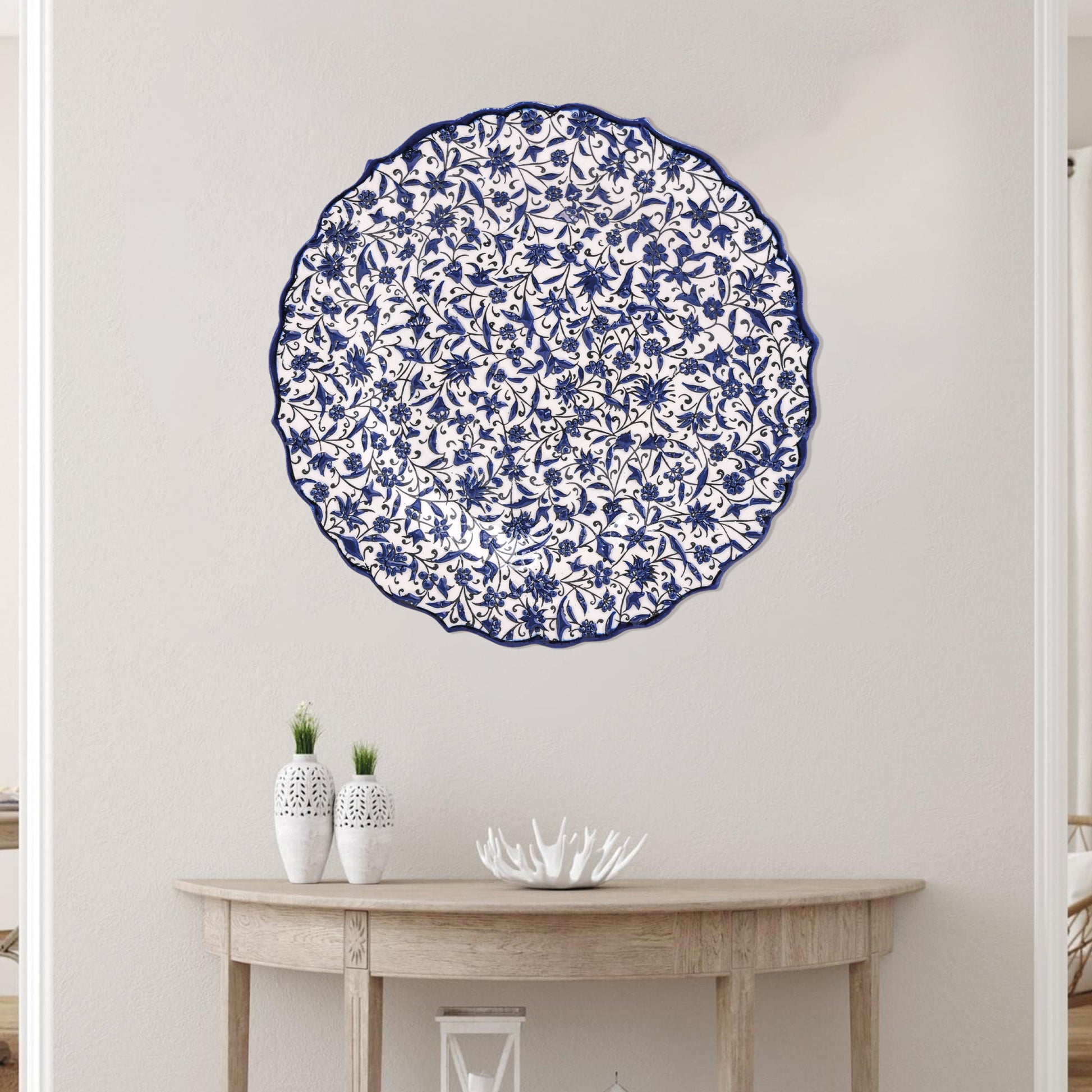 Ceramic Decorative Plate, Indigo Vines Decorative Plate